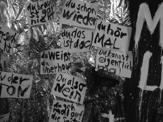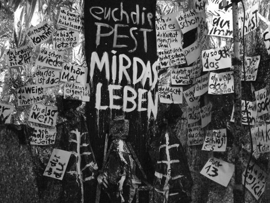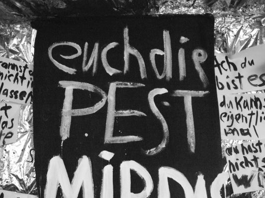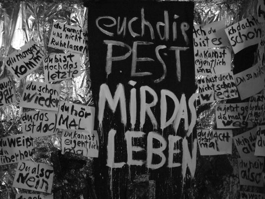 Als Zeichen und Protest gegen die Gewalttätigkeiten gegen meine künstlerische